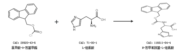 1.通过氯甲酸-9-芴基甲酯和L-组氨酸合成N-芴甲氧羰基-L-组氨酸