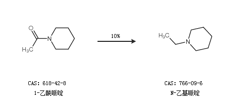 1.通过1-乙酰哌啶合成N-乙基哌啶,收率约10%;