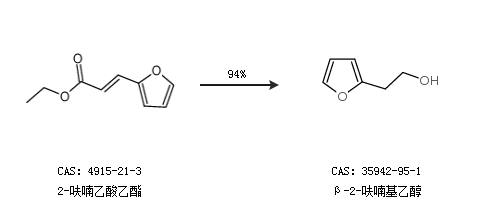 2.通过2-呋喃乙酸乙酯合成β-2-呋喃基乙醇,收率约94%;