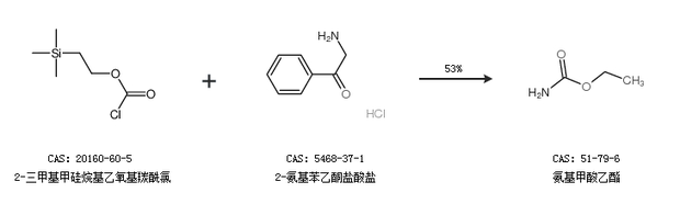 2.通过2-三甲基甲硅烷基乙氧基羰酰氯和2-氨基苯乙酮盐酸盐合成氨基甲酸乙酯,收率约53%;