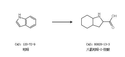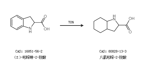 1.通过(±)-吲哚啉-2-羧酸合成八氢吲哚-2-羧酸,收率约70%;