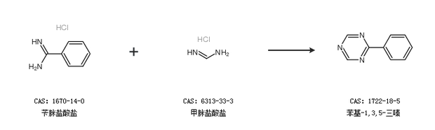 1.通过苄脒盐酸盐和甲脒盐酸盐合成苯基-1,3,5-三嗪