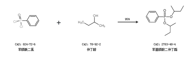 1.通过苯膦酰二氯和仲丁醇合成苯基膦酸二仲丁酯,收率约95%;