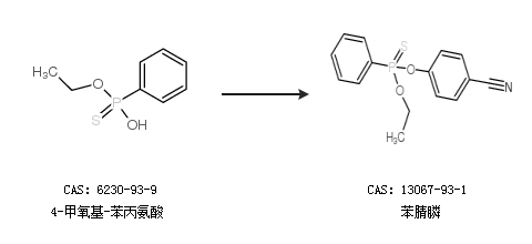 英文别名 racemic O-(4-cyanophenyl) O-ethyl phenylphosphonothionate;ent25,832;(Ξ)-[O-4-(cyanophenyl) O-ethyl phenylphosphonothioate];Surazon;O-4-cyanophenyl O-ethyl phenylphosphonothioate;O-(4-cyanophenyl) O-ethyl P-phenylphosphonothioate;O-p-cyanophenyl O-ethyl phenylphosphonothionate;OMS 870;(RS)-(O-4-cyanophenyl O-ethyl phenylphosphonothioate);CYP;CYANOFENPHOS;O-p-cyanophenyl O-ethyl phenyl-phosphonothioate;s4087;SUD;Surecide;cyp (jmaf);
