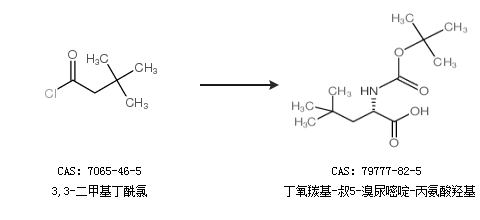 1.通过3,3-二甲基丁酰氯合成丁氧羰基-叔5-溴尿嘧啶-丙氨酸羟基