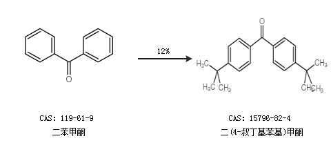 1.通过二苯甲酮合成二(4-叔丁基苯基)甲酮,收率约12%;