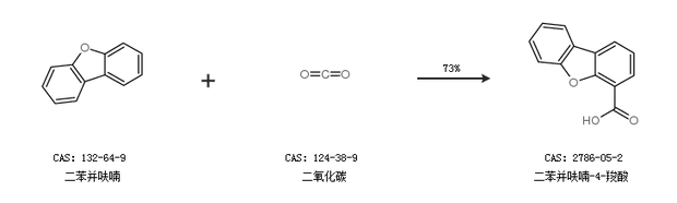 1.通过二苯并呋喃和二氧化碳合成二苯并呋喃-4-羧酸,收率约73%;