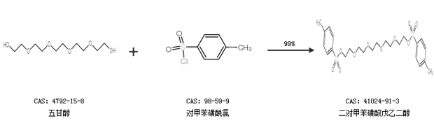 1.通过五甘醇和对甲苯磺酰氯合成二对甲苯磺酸戊乙二醇,收率约10%;