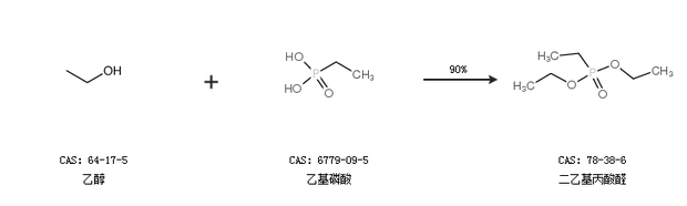 1.通过乙醇和乙基磷酸合成二乙基丙酸醛,收率约90%;