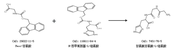 1.通过Fmoc-甘氨酸和N-芴甲氧羰基-L-组氨酸合成甘氨酰甘氨酰-L-组氨酸