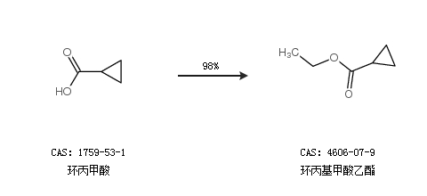 1.通过环丙甲酸合成环丙基甲酸乙酯,收率约98%;