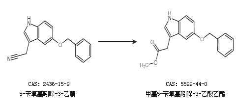 1.通过5-苄氧基吲哚-3-乙腈合成甲基5-苄氧基吲哚-3-乙酸乙酯