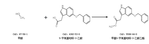 2.通过甲醇和5-苄氧基吲哚-3-乙酸合成甲基5-苄氧基吲哚-3-乙酸乙酯