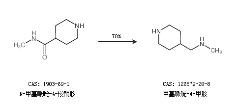 1.通过N-甲基哌啶-4-羧酰胺合成甲基哌啶-4-甲胺,收率约78%;