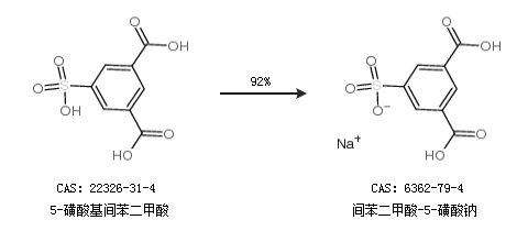 1.通过5-磺酸基间苯二甲酸合成间苯二甲酸-5-磺酸钠,收率约92%;