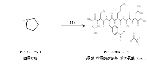 1.通过四氢吡咯合成亮氨酰-丝氨酸对硝基-苯丙氨酰-Nle-丙氨酰-亮氨酸甲酯三氟乙酸,收率约88%;