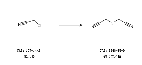 1.通过氯乙腈合成硫代二乙睛,收率约70%;
