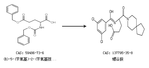 2.通过(R)-5-(苄氧基)-2-(苄氧基羰基氨基)-5-羰基戊酸合成螺谷胺