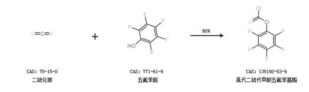 1.通过二硫化碳和五氟苯酚合成氯代二硫代甲酸五氟苯基酯,收率约90%;