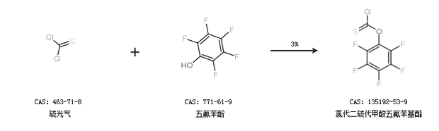 2.通过硫光气和五氟苯酚合成氯代二硫代甲酸五氟苯基酯,收率约3%;