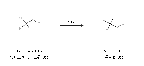 2.通过1,1-二氟-1,2-二氯乙烷合成氯三氟乙烷,收率约90%;