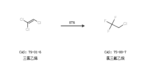 1.通过三氯乙烯合成氯三氟乙烷,收率约87%;