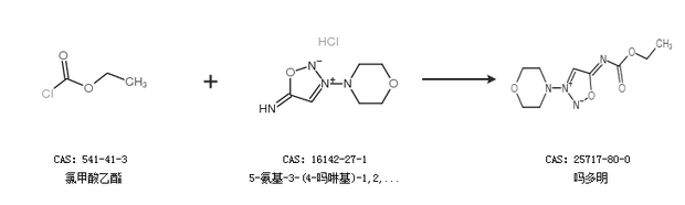 1.通过氯甲酸乙酯和5-氨基-3-(4-吗啉基)-1,2,3-恶二唑盐酸盐合成吗多明