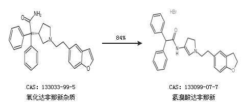 1.通过氧化达非那新杂质合成氢溴酸达非那新,收率约84%;