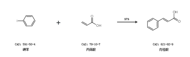 2.通过碘苯和丙烯酸合成肉桂酸,收率约97%;