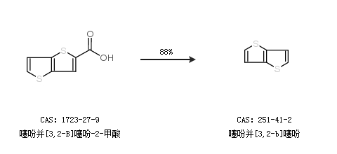 1.通过噻吩并[3,2-B]噻吩-2-甲酸合成噻吩并[3,2-b]噻吩,收率约88%;
