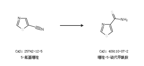 1.通过5-氰基噻唑合成噻唑-5-硫代甲酰胺