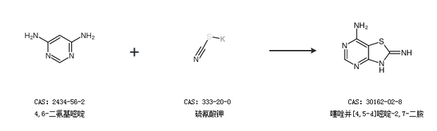 1.通过4,6-二氨基嘧啶和硫氰酸钾合成噻唑并[4,5-d]嘧啶-2,7-二胺