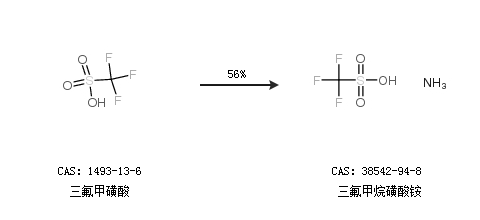 1.通过三氟甲磺酸合成三氟甲烷磺酸铵,收率约56%;