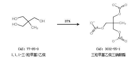 1.通过1,1,1-三(羟甲基)乙烷合成三羟甲基乙烷三硝酸酯,收率约87%;