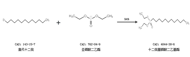 1.通过溴代十二烷和亚磷酸二乙酯合成十二烷基膦酸二乙基酯,收率约94%;