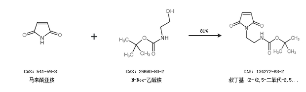 1.通过马来酰亚胺和N-Boc-乙醇胺合成叔丁基 (2-(2,5-二氧代-2,5-二氢-1H-吡咯-1-基)乙基)氨基甲酸酯,收率约81%;