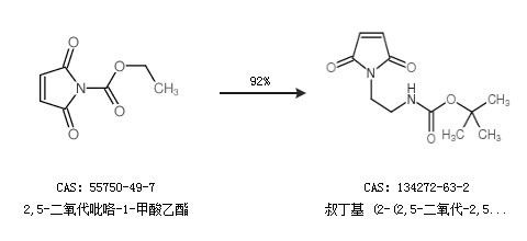2.通过2,5-二氧代吡咯-1-甲酸乙酯合成叔丁基 (2-(2,5-二氧代-2,5-二氢-1H-吡咯-1-基)乙基)氨基甲酸酯,收率约92%;