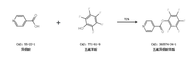 1.通过异烟酸和五氟苯酚合成五氟异烟酸苯酯,收率约72%;