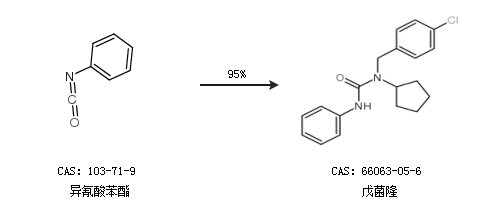 1.通过异氰酸苯酯合成戊菌隆,收率约95%;