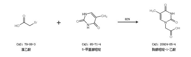 1.通过溴乙酸和5-甲基脲嘧啶合成胸腺嘧啶-1-乙酸,收率约82%;