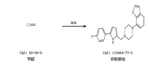 1.通过甲醛合成依吡哌唑,收率约90%;