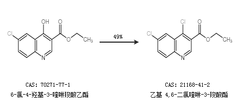 1.通过6-氯-4-羟基-3-喹啉羧酸乙酯合成乙基 4,6-二氯喹啉-3-羧酸酯,收率约49%;