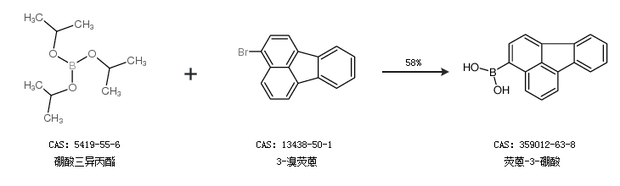 2.通过硼酸三异丙酯和3-溴荧蒽合成荧蒽-3-硼酸,收率约58%;