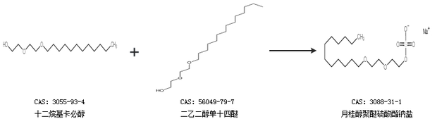 2.通过十二烷基卡必醇和二乙二醇单十四醚合成月桂醇聚醚硫酸酯钠盐