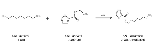 1.通过正辛醇和2-糠酸乙酯合成正辛基-2-呋喃羧酸酯,收率约60%;