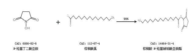 1.通过N-羟基丁二酰亚胺和棕榈酰氯合成棕榈酸 N-羟基琥珀酰亚胺酯,收率约99%;
