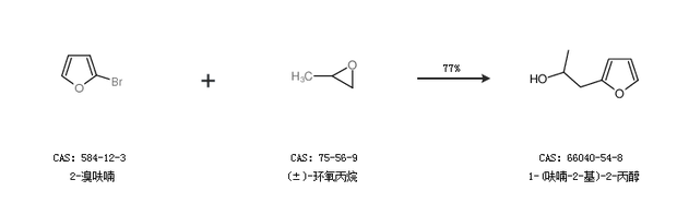 2.通过2-溴呋喃和(±)-环氧丙烷合成1-(呋喃-2-基)-2-丙醇,收率约77%;