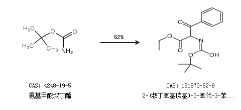 1.通过氨基甲酸叔丁酯合成2-(叔丁氧基羰基)-3-氧代-3-苯基丙酸乙酯,收率约62%;