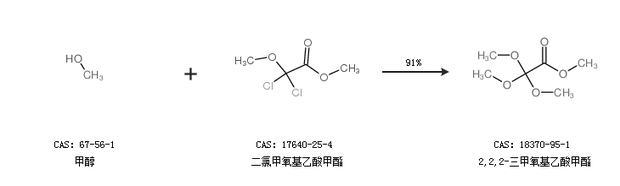1.通过甲醇和二氯甲氧基乙酸甲酯合成2,2,2-三甲氧基乙酸甲酯,收率约91%;