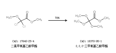 2.通过二氯甲氧基乙酸甲酯合成2,2,2-三甲氧基乙酸甲酯,收率约78%;